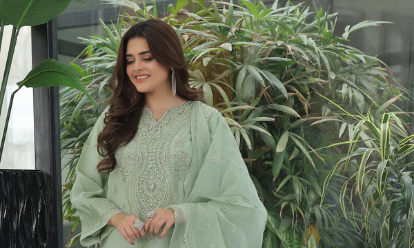 Dupatta: Embroidered organza – lightweight, flowy, and richly detailed.